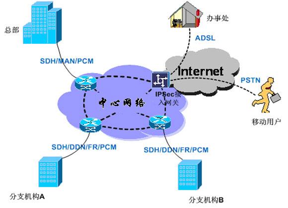安全性强:采用IPSec协议加密,或采用PPTP建立隧道方式,确保数据传输的安全性;