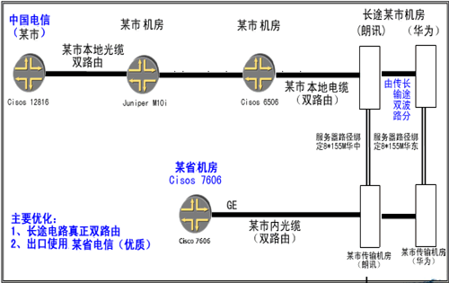 [带宽批发] 现有运行管理体制: ◇值班制度 线路监控由7*24专人值班,值班人员共5人,一天三人轮班制,实行15分钟查询线路状态,当日晚十二点至次日早八点实行二小时查询线路状态。 ◇监控手段 对线路进行监控的手段主要有SolarWinds及MRTG流量监控方式,两种方式互为备份并互为参照。自主创新研发时时声光电告警系统,实现故障发生后迅速以手机短信息通知值班员,高效提高运行率。 ◇故障处理 故障发生后,抢修人员5分钟内赶到现场。对于所发现的任何故障或告警均立即通知用户,并进行详细的沟通以判断故障,在故障或告警发生后保持每20分钟与用户沟通一次,并通报故障处理进展,同时发现暂未影响线路运行的告警也要进行严格的排查,并通报用户运维以便进行相关监控,并作特殊处理。歌华运维人员在线路未恢复阶段将实行24小时专人看护此线路运行情况,在线路恢复后将继续密切观察12个小时。 ◇绿色通道 与用户建立维护、保障绿色通道,10-18分钟内与用户运行主管通3次电话,确认故障点并迅速解决。 [带宽批发] ◆成功案例 某省分流方案